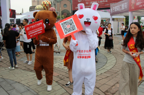 5月19日至5月20日,宁波送子鸟医院志愿者不畏细雨微寒,在宁波天一广场搭建起“爱心一角”红色区域,为甬城人民的健康贡献自己的爱心。为宣传优生优育科普知识,倡导科学孕育观,送子鸟爱心志愿者通过扫描二维码赠送饮用水的方式,让更多的宁波市民接触并了解生育健康知识。活动期间,累计共送出1000多瓶饮用水。