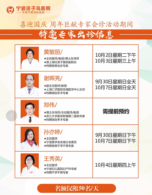 另外为了应对国庆节就诊高峰,宁波送子鸟医院实行网络预约、电话预约等多个预约通道,让平时忙于工作的就医患者在国庆假日也能享受到好的专家诊疗。